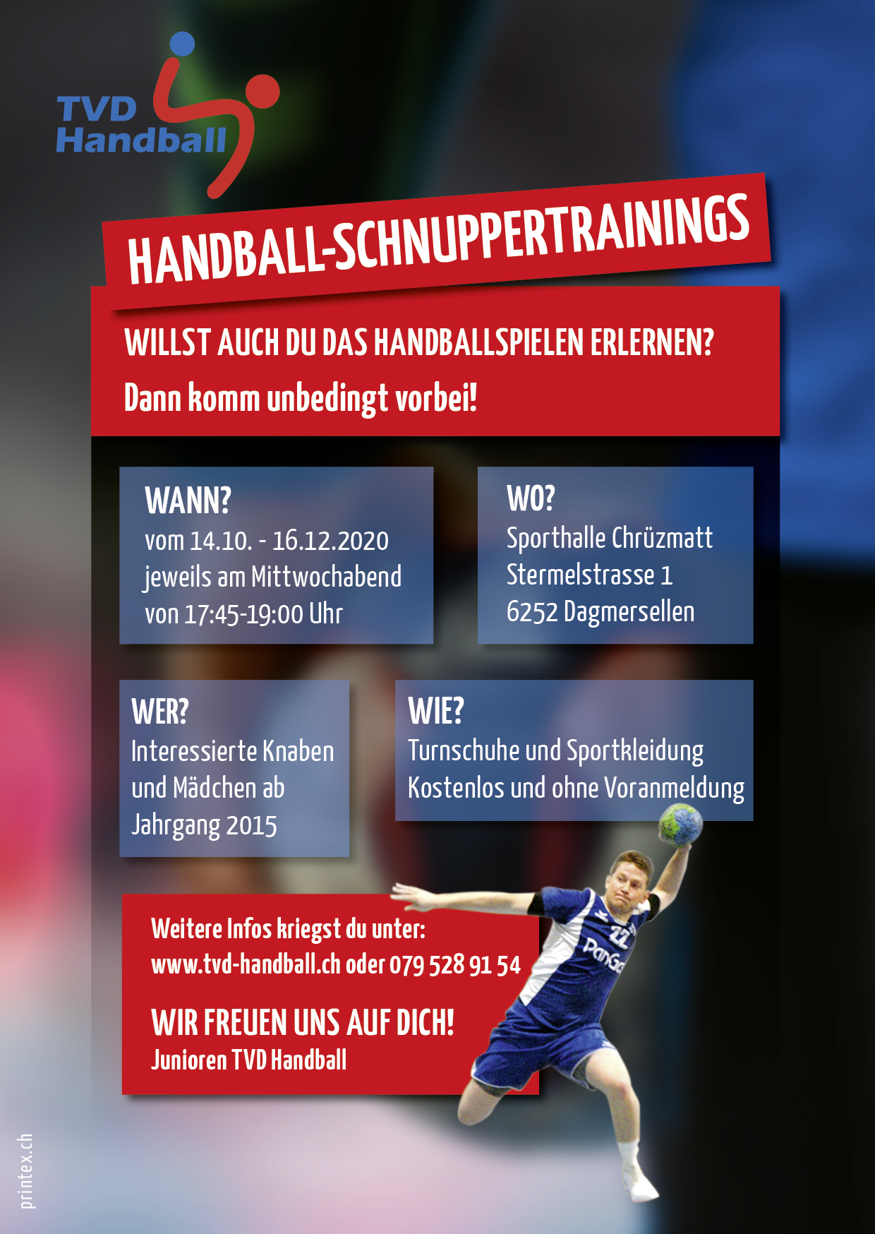 Bis zu den Weihnachtsferien organisieren wir wiederum kostenlose Handball-Schnuppertrainings für alle Kids mit Jahrgang 2015 und älter. Die Trainings finden jeweils am Mittwoch von 17:45-19:00 Uhr in der Chrüzmatthalle in Dagmersellen statt. Die Kids können ohne Anmeldung erstmals etwas Handball-Luft schnuppern.